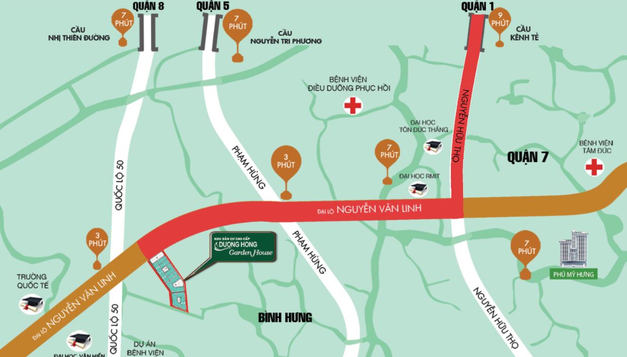 Khoảng cách từ KDC Dương Hồng Garden House: