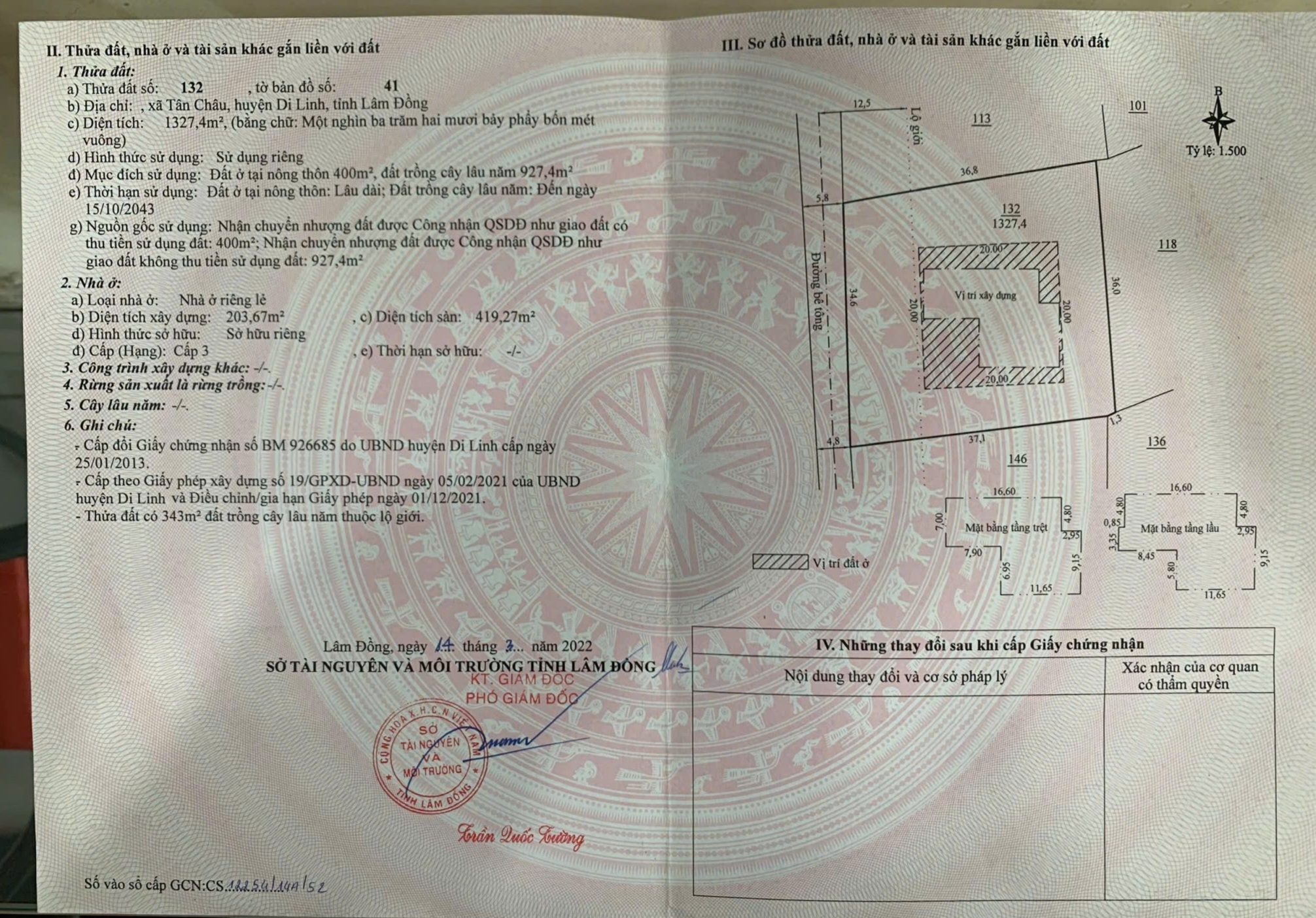 🔹 Tổng diện tích đất: 1.327m²