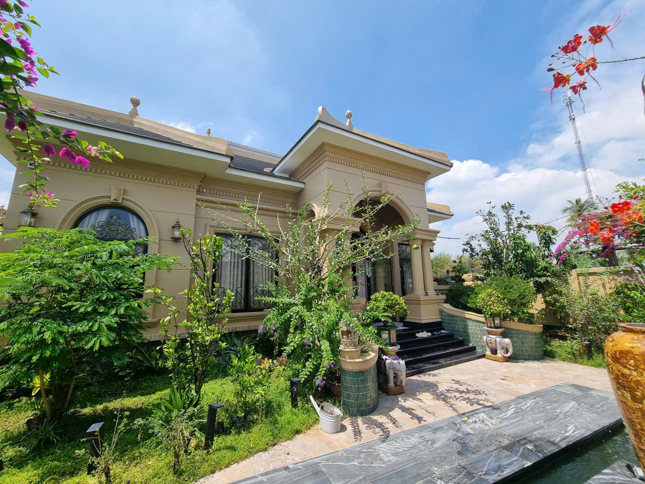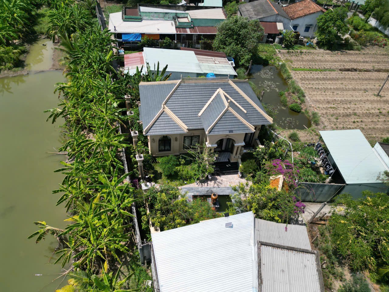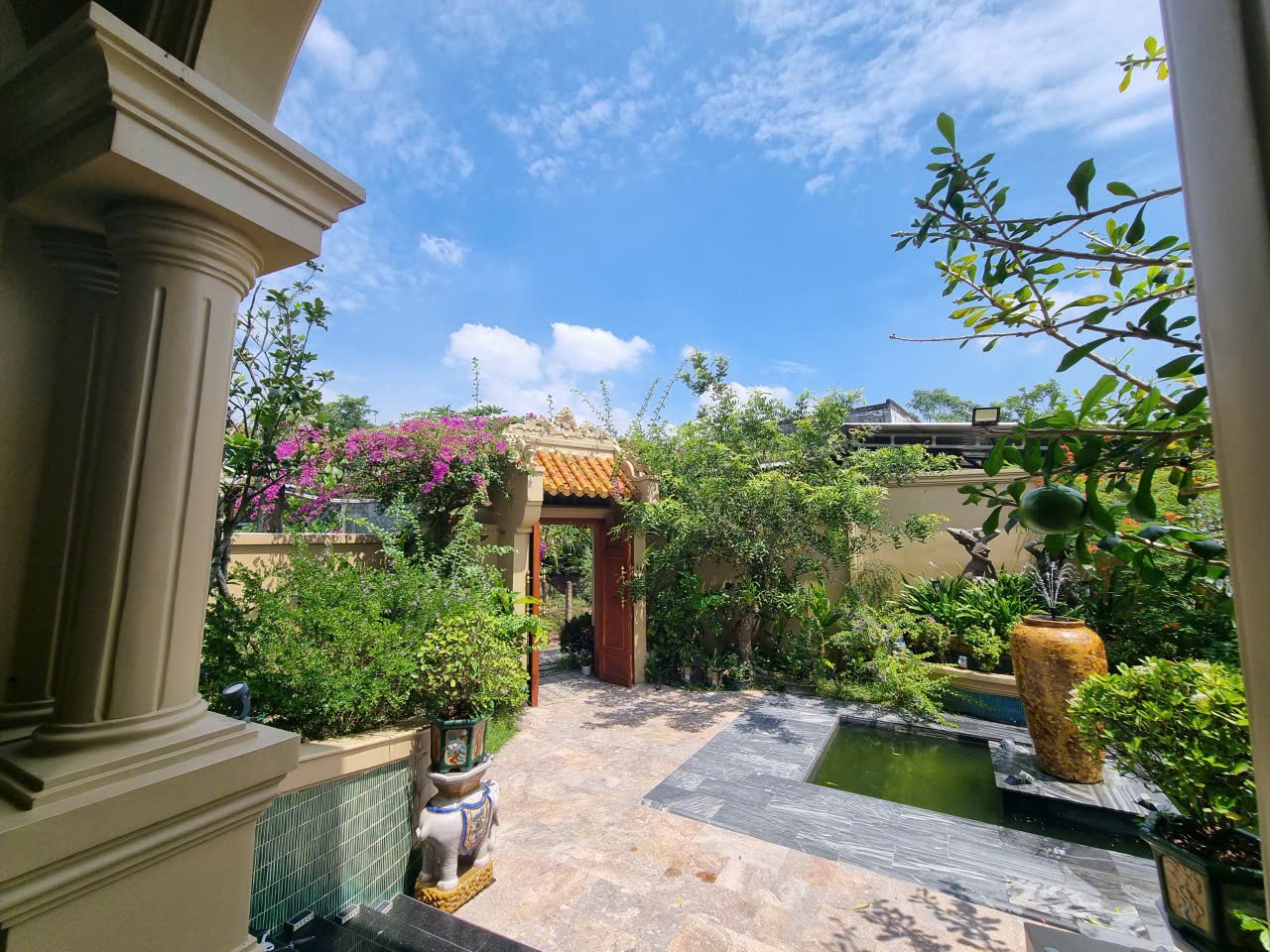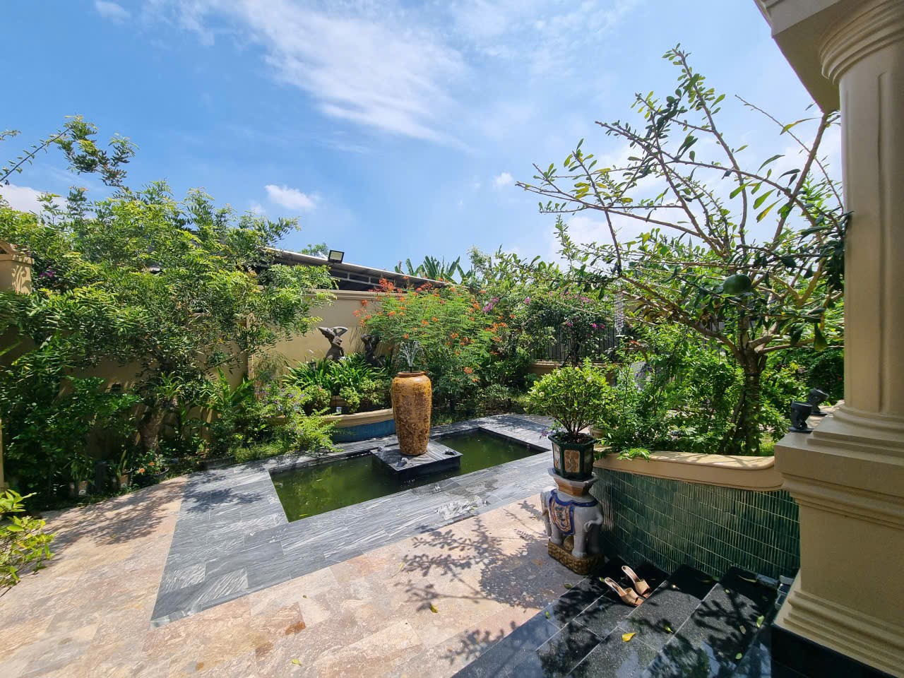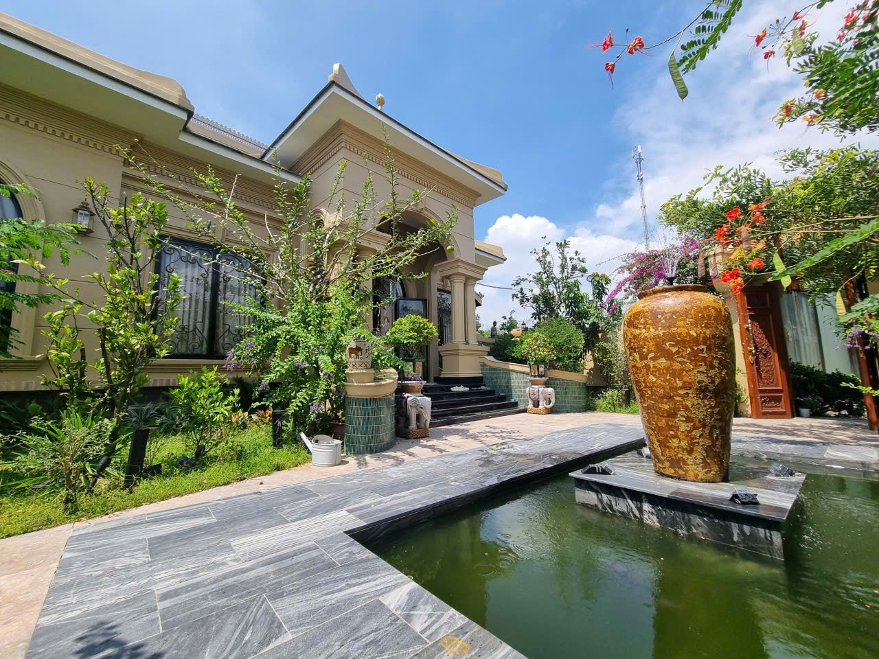 • Sân vườn xanh mát, hồ nước phong thủy trước nhà – không gian cực kỳ thư thái
