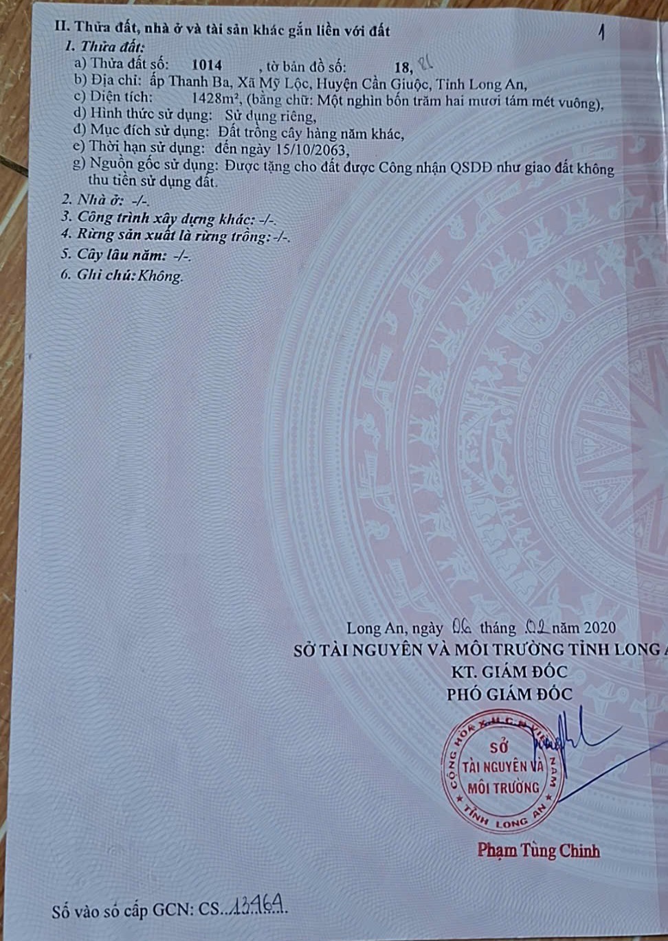 – Diện tích: 2.028m² (đã có 600m² thổ cư)