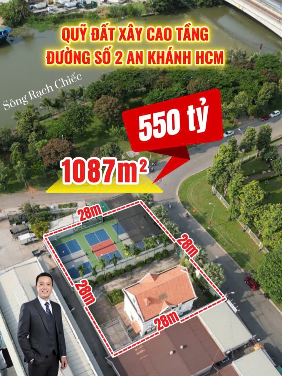 Diện tích: 1.087m² (ngang lớn ~38m)