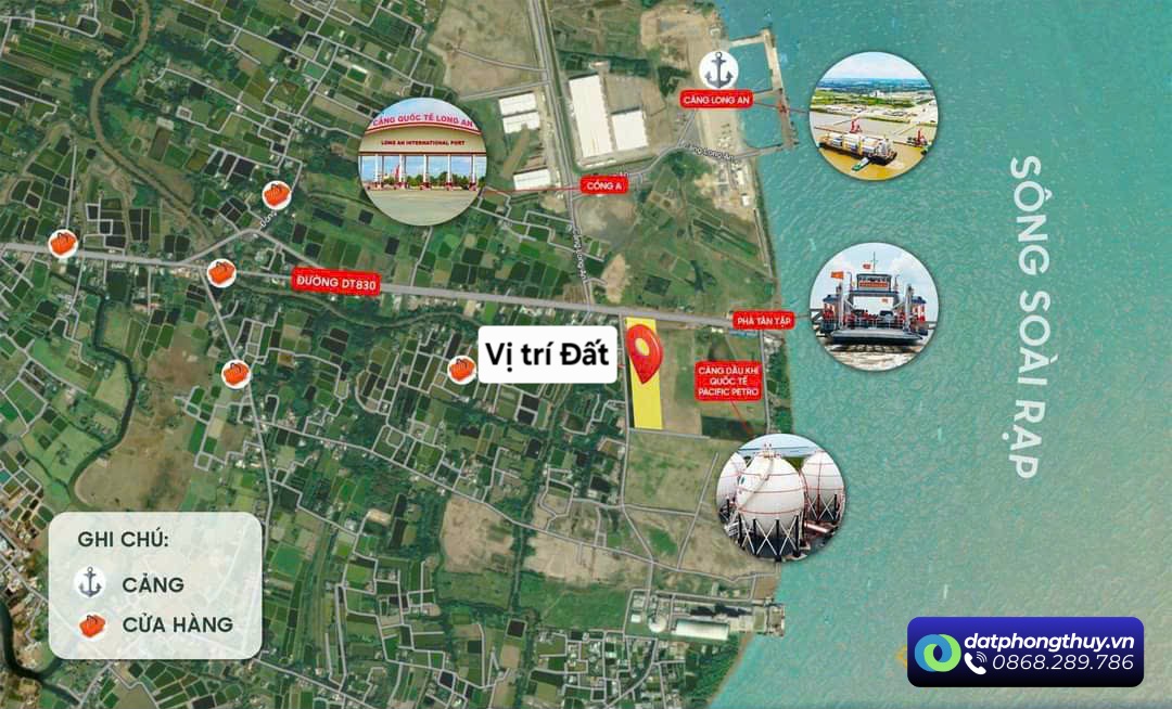 ✅ Đối diện Cảng Quốc tế Long An, cạnh Cảng dầu khí Pacific & Phà Cần Giờ, kết nối xuất nhập khẩu quốc tế nhanh chóng.